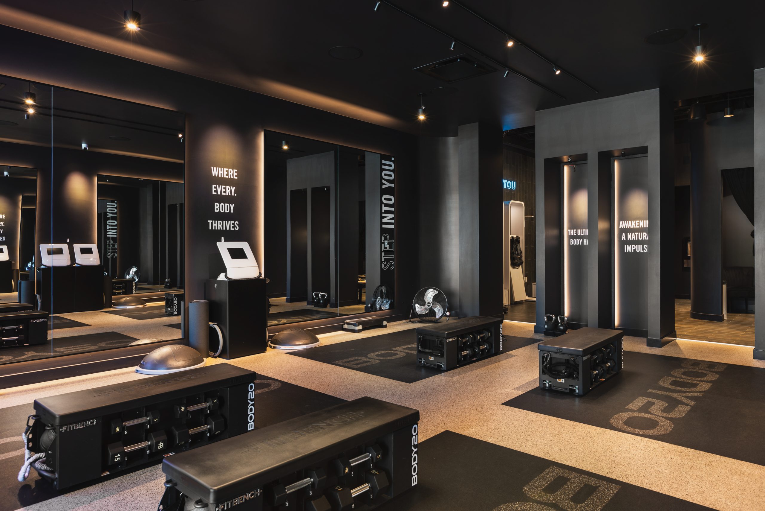 Mappco worked with r4 Architects to build this boutique gym for Body 20 in Fort Collins. Body 20 is a personalized, technology-based workout experience using electro-muscle stimulation (EMS) technology. This new interior tenant finish involved building a workout studio, changing rooms, laundry room, offices and restroom as well as custom fabricated furniture in the reception and prep areas. The scope of work included all new walls, finishes, custom lighting, new HVAC, plumbing and electrical.